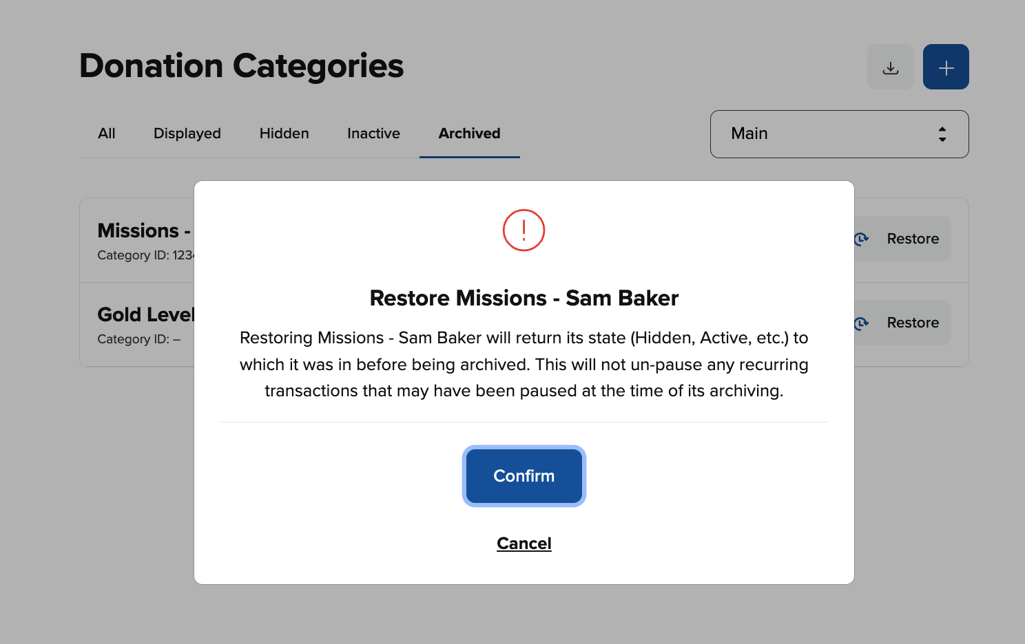 3. When restoring an archived category, it does not affect any existing recurring transactions.