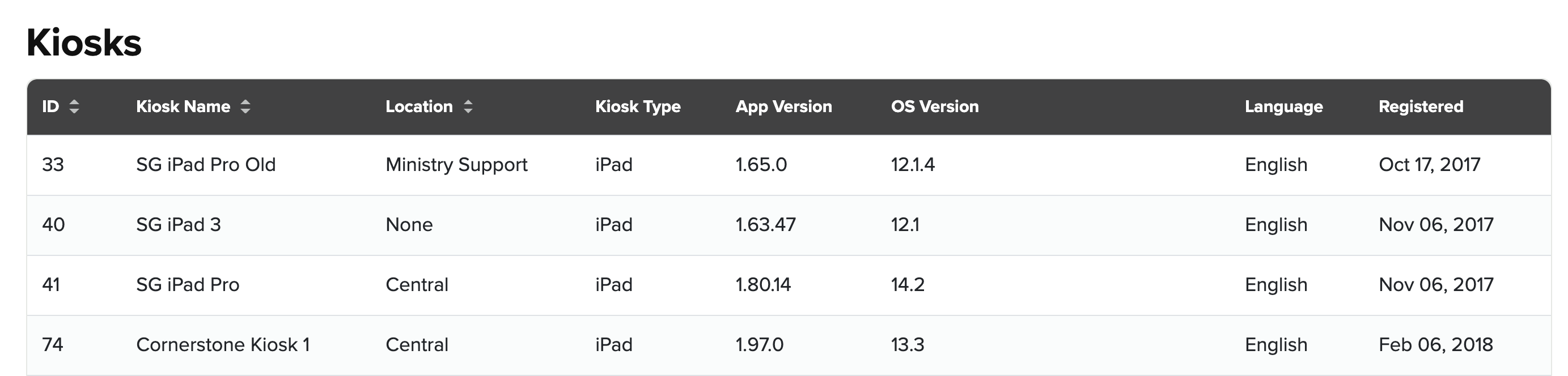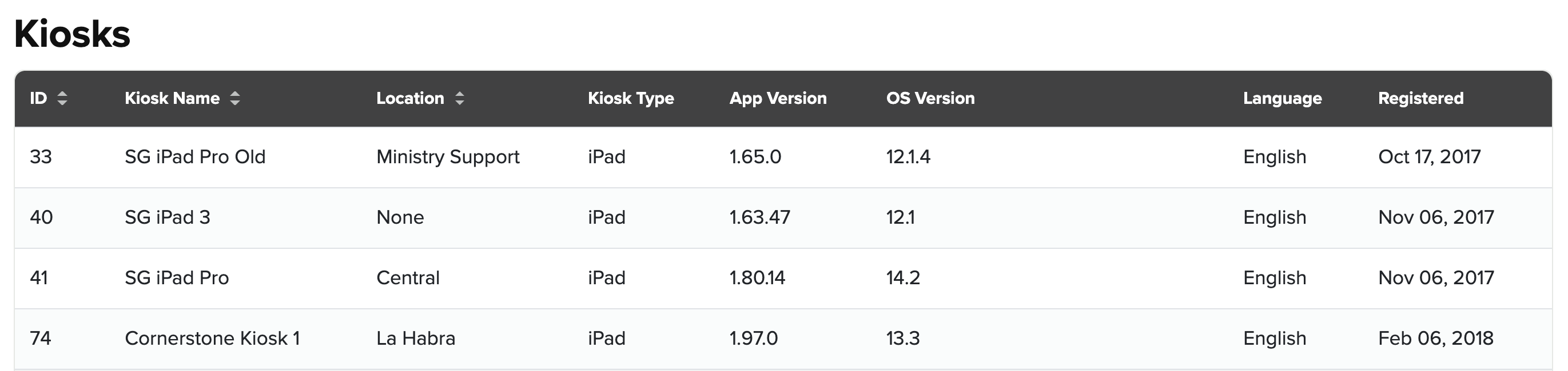 1. Go to Settings > Kiosks. There you will see a list of your registered kiosks.