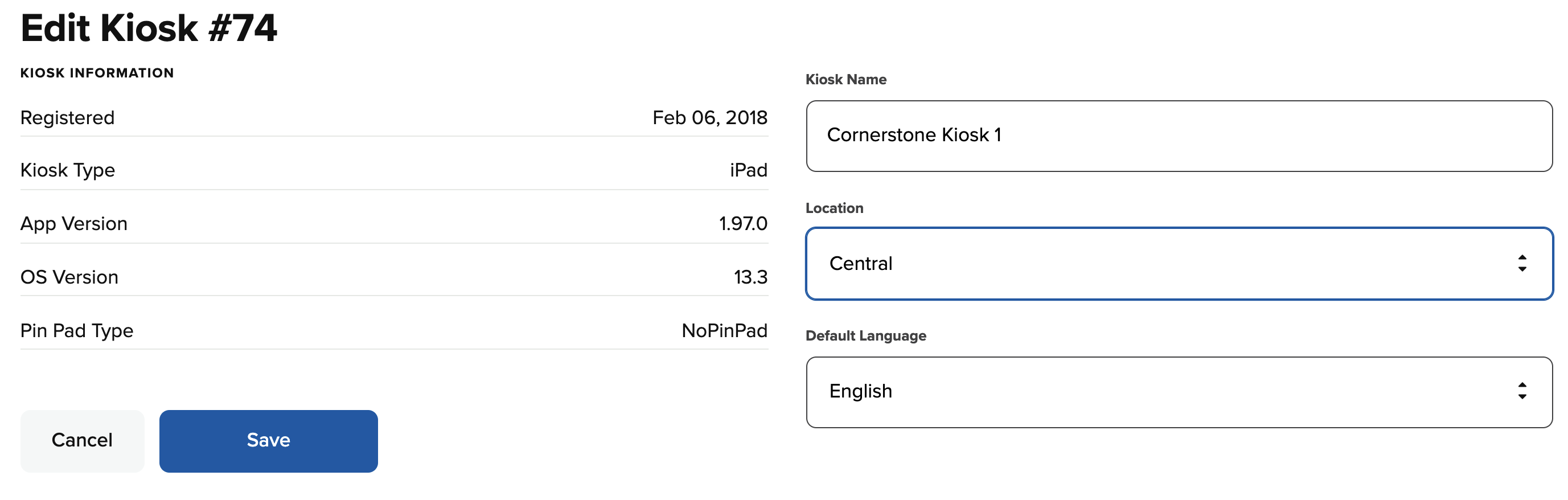 Now, on the main Kiosks page, the kiosk detail will show which location it is assigned to.