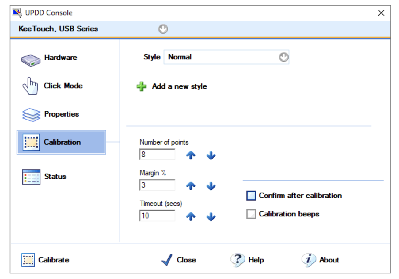 4. Highlight the Calibration tab on the left side of the UPDD Console.
