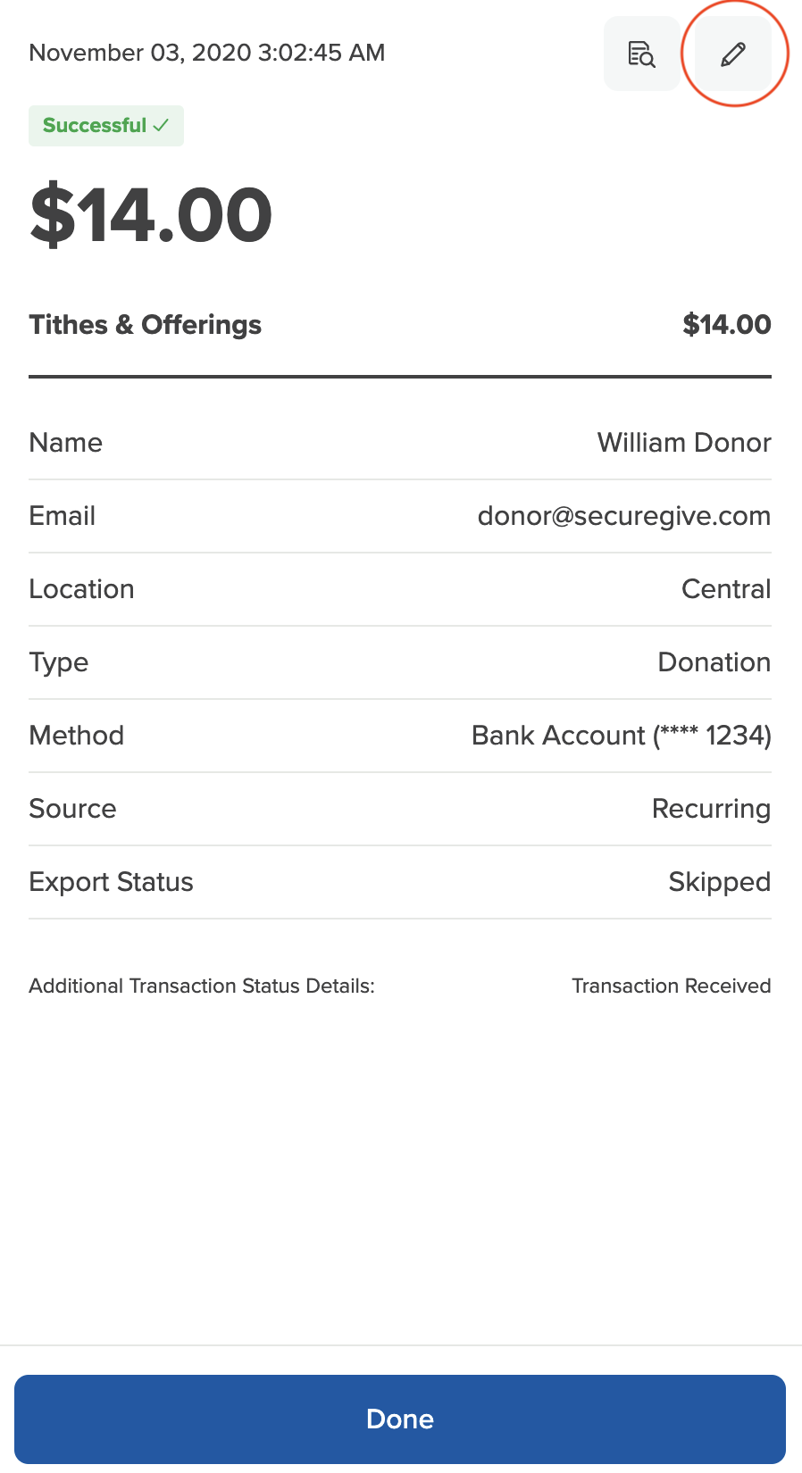 2. Select the Edit Transaction button at the top right of the transaction summary screen.