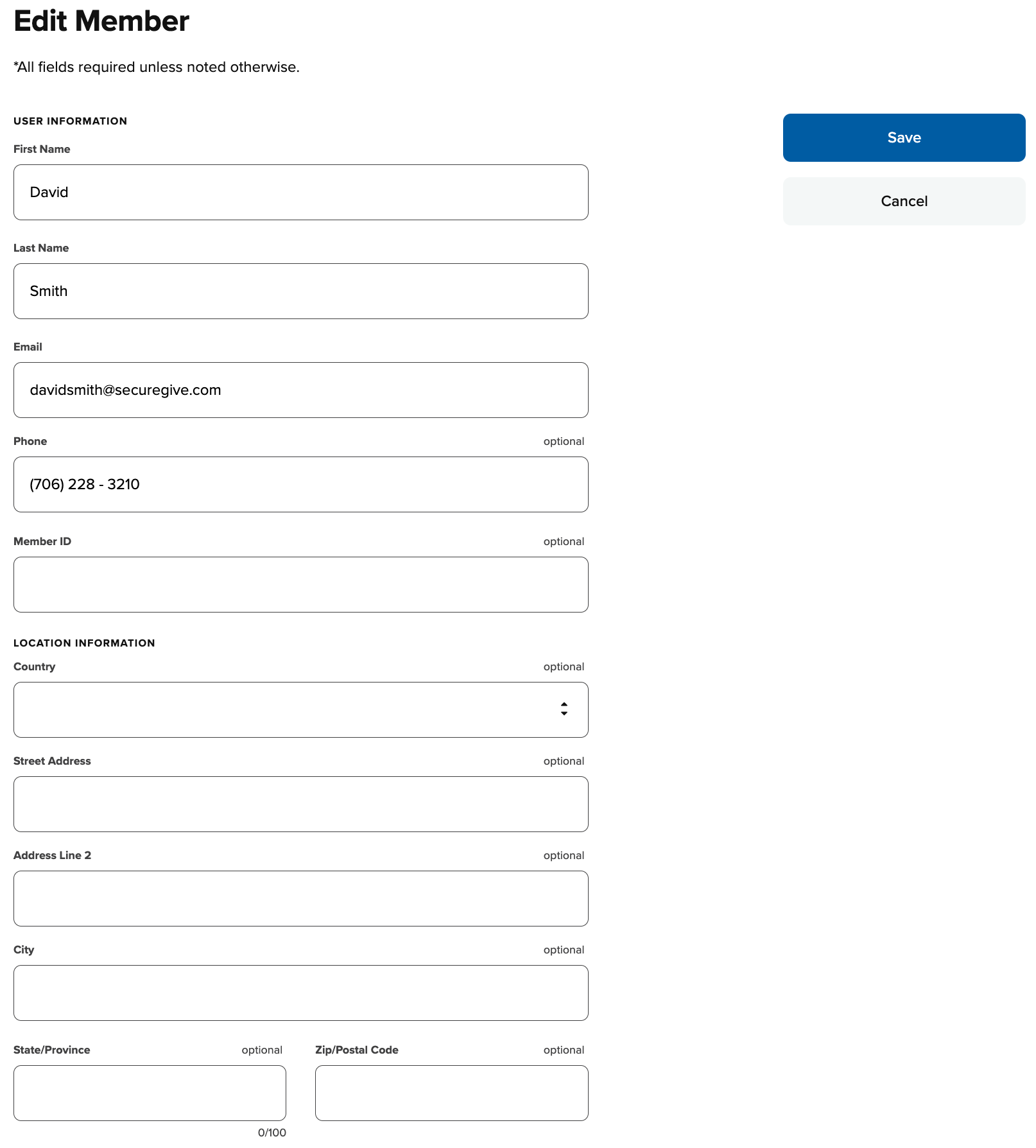 *Please note, if a member belongs to multiple organizations, you will not be able to edit their profile. Please contact SecureGive to edit the member's information.